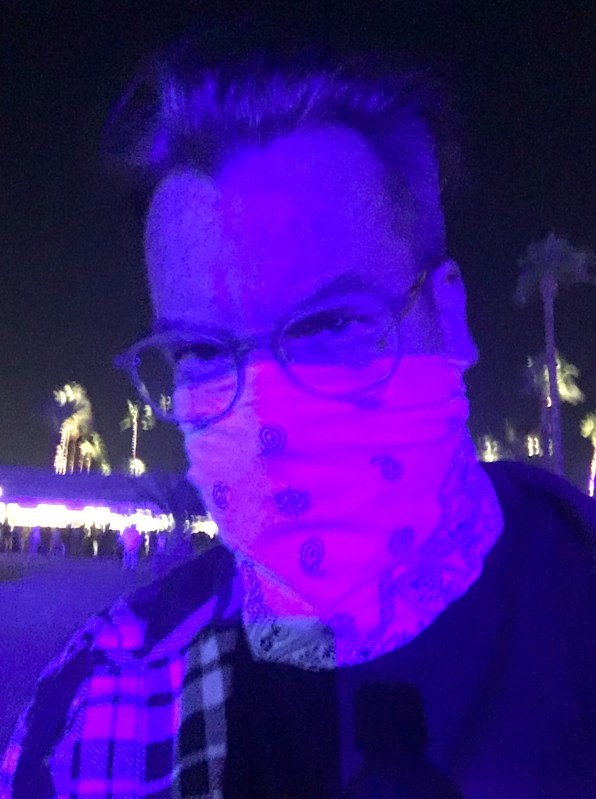 Bandana wrapped to fight dust.